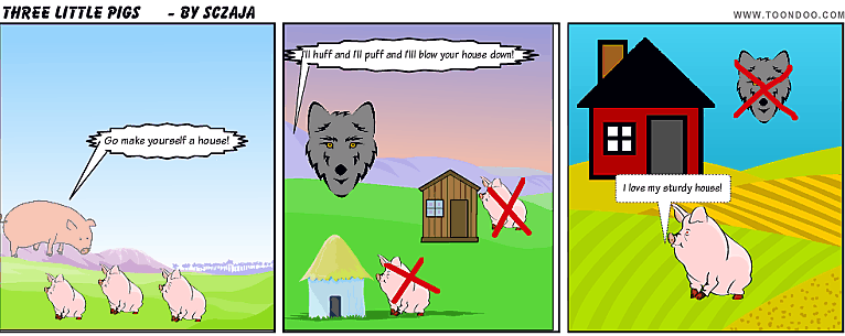 Three litlle pigs comic strip