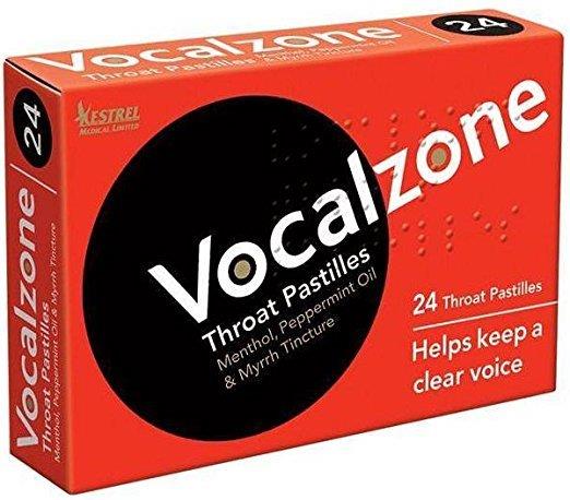 Vocalzone throat pastilles provide the throat with relief it needs from the irritations caused by excessive speaking, singing or smoking. Vocalzone works to soothe the dry, irritated throat that is a frequent symptom of the common cold. Each pack contains 24 throat pastilles. You just dissolve one pastille in your mouth and inhale deeply. You can take another Vocalzone pastille every two hours after this as required.