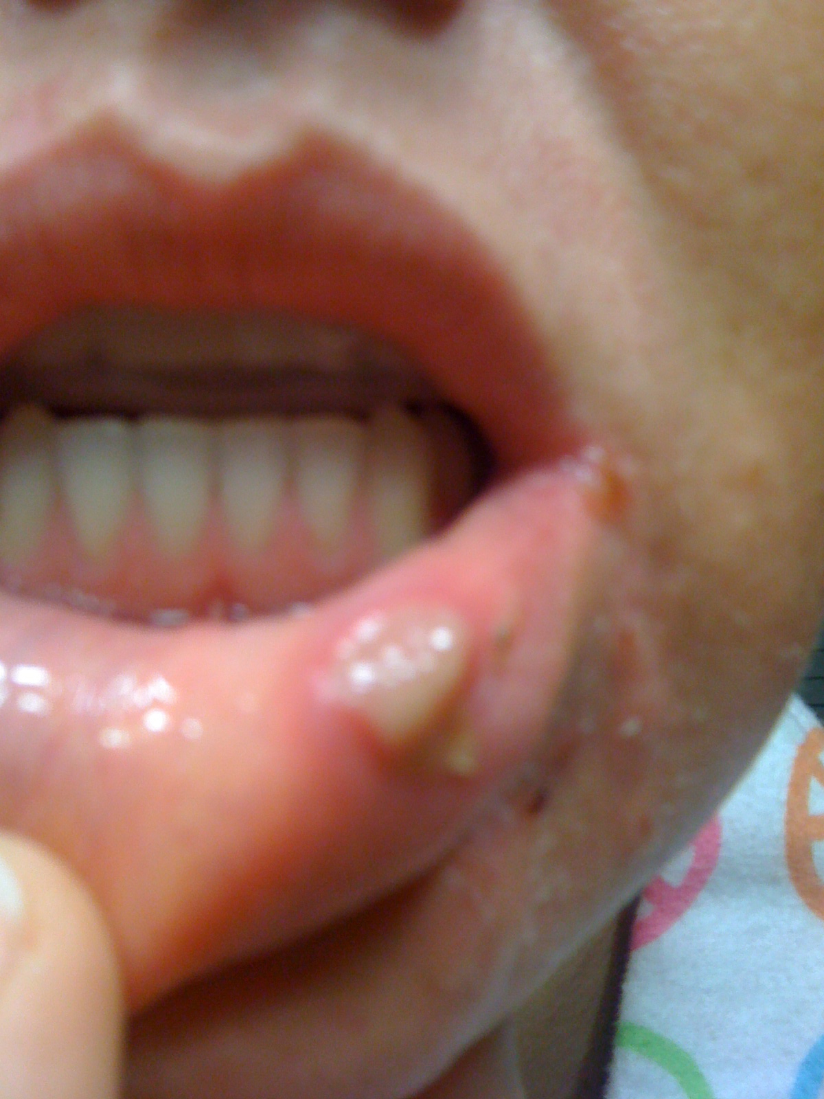 Oral cancer includes cancers of the mouth and back of the throat (oropharynx). Oral cancer accounts for roughly 3 percent of all cancers diagnosed annually in the United States, or about 49,700 new cases each year. Oral cancer can affect any part of the oral cavity or throat but are most common on the sides and back of the tongue, as it approaches the throat. While looking in your mouth, say "Ahh" to lower the tongue and to give you a view of the oropharynx. Look in your mouth and keep an eye out for small sores or red or white spots inside or around your mouth and throat that last longer than two weeks. Other signs of oral cancer include lumps, pain, tenderness, and trouble chewing, swallowing or speaking.