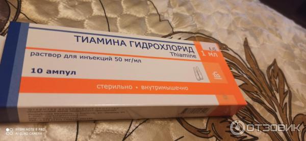 Препарат «Тиамин гидрохлорид»: краткое описание Данное средство выпускают в виде раствора для внутримышечных инъекций . Он, как правило, бесцветный (иногда может присутствовать слабый оттенок), с характерным несильным запахом . Помещен он в ампулы из нейтрального стекла . Отпускается в коробках по 5 или 10 ампул .