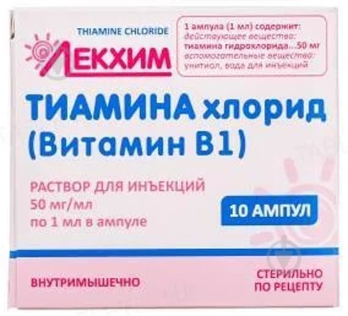 Тиамина хлорид представляет собой синтетический аналог витамина В1 и принадлежит к группе водорастворимых витаминов . Форма выпуска и состав препарата Препарат Тиамина хлорид выпускается в форме раствора для инъекционного введения .