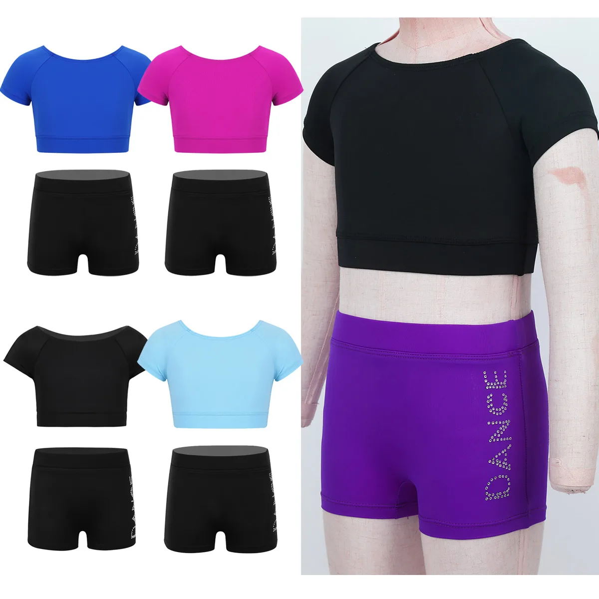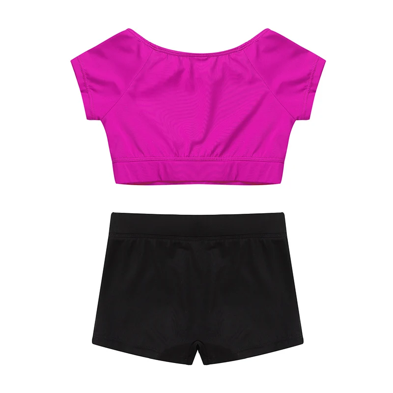 "TiaoBug Kids Two-piece Crop Tops with Letters Printed Ballet Gymnastics Shorts Set Gym Workout Tankini Outfit Girls Dance Wear" * Buy Now Just For 9$