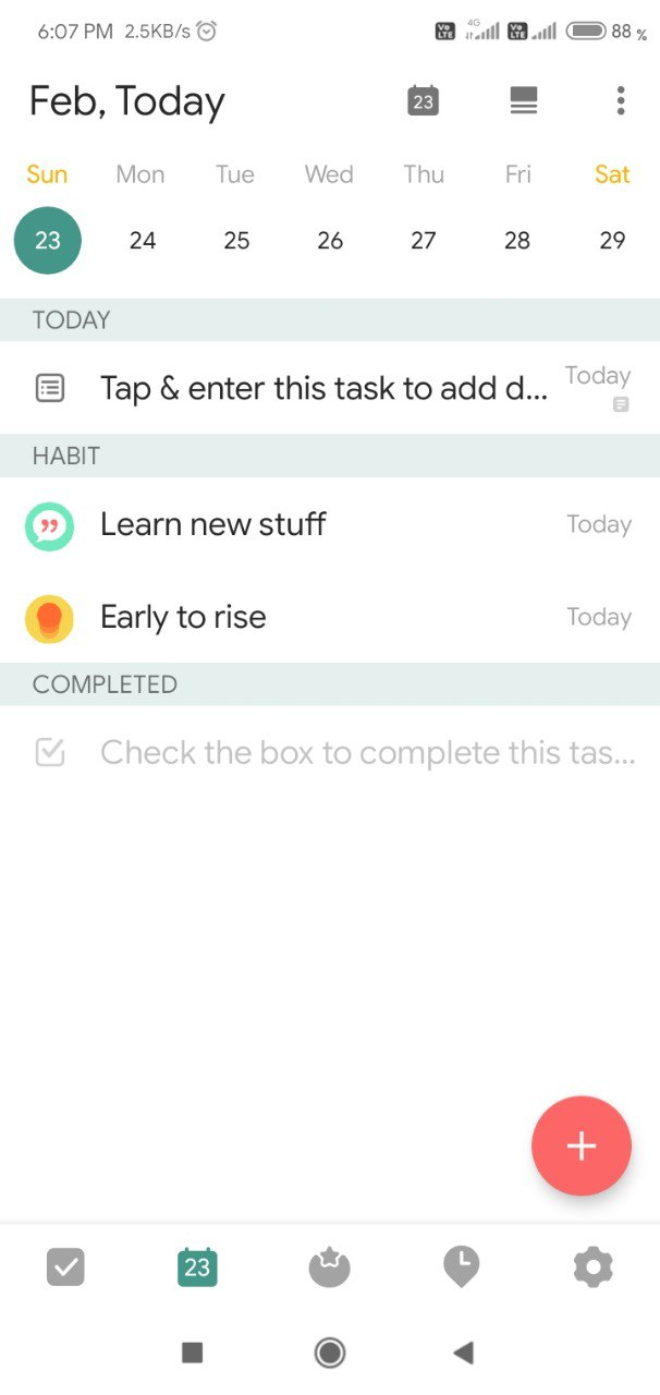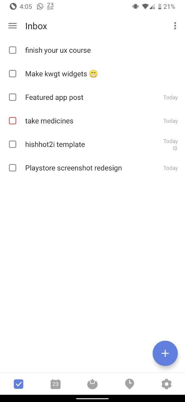 TickTick is supposed to be your personal assistant while you race through the day. It keeps track of all the tasks and time at which you want to do the task. It reminds you about the task & you can set it to remind earlier so that you have a bit more time to get ready before a movie. You can make different folders to group similar type of tasks together. So stack all your bucket list in one folder and they won't be visible in your daily list. The app also has a small introduction and video to get you acquainted with the UI.