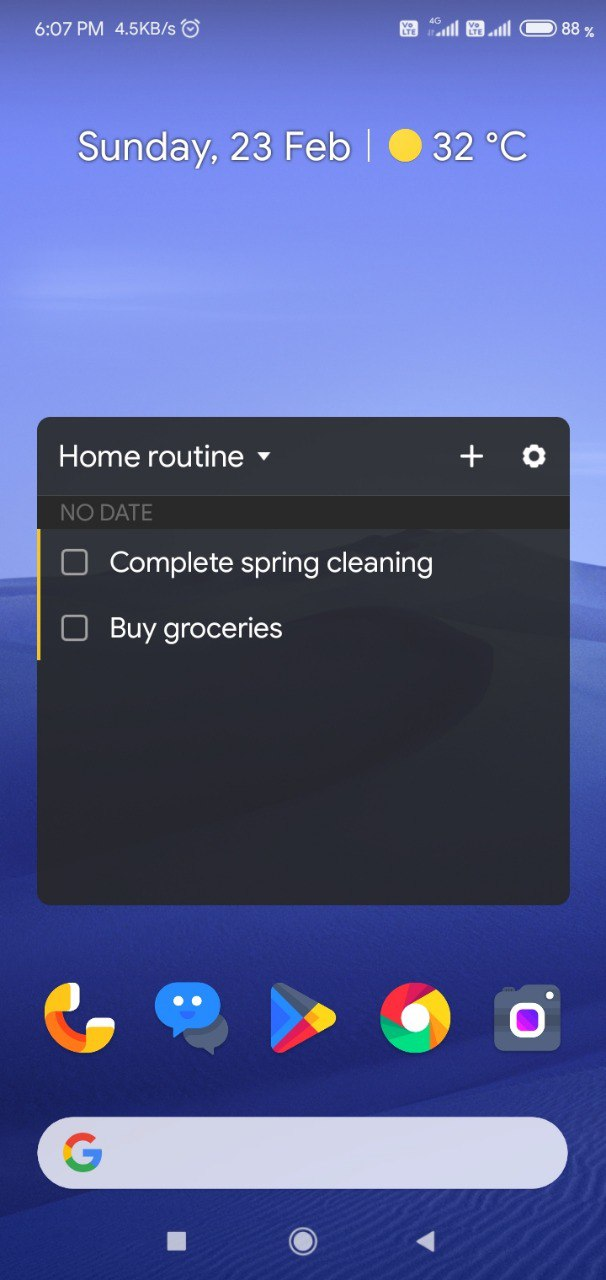 TickTick has some neat features up its sleeve. First of all, you get the basic to-do functionality with reminders. It has different lists you can make for various things like birthdays, shopping lists, work, personal, etc. It also has smart lists which essentially lists the tasks for today, tomorrow and so on. It has the option to create tasks via voice so you don't have to type (for all us lazy out there). You can also customize UI by using themes, some of which are free while some are available for premium users. The bottom tab bar is customizable and you can add a Pomo timer (25:5 rule) & Habit tracker which are explained in the app. It also tracks the statistics so that you know if you've been completing your tasks on time or how regular are you with a habit you want to develop. You can also share a list with other people so that you can collaborate with them on projects or just ticking things off for the party you're planning. The widgets are also top of the class which is made keeping productivity in mind.
