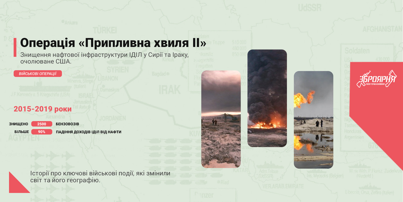 Операція "Tidal Wave II" стала ключовою військовою кампанією коаліції під проводом США, спрямованою на підрив економічної потужності Ісламської держави (ІДІЛ) шляхом систематичного знищення її нафтової інфраструктури. Назва операції була обрана генерал-лейтенантом Шоном Макфарландом як оммаж однойменній місії часів Другої світової війни, під час якої авіація союзників бомбила нацистські нафтопереробні заводи в Румунії. Головною метою було не просто тимчасове пошкодження об'єктів, а нанесення такої шкоди, яка потребувала б складного ремонту або дефіцитних запчастин, що критично обмежило б здатність терористів фінансувати свою діяльність.