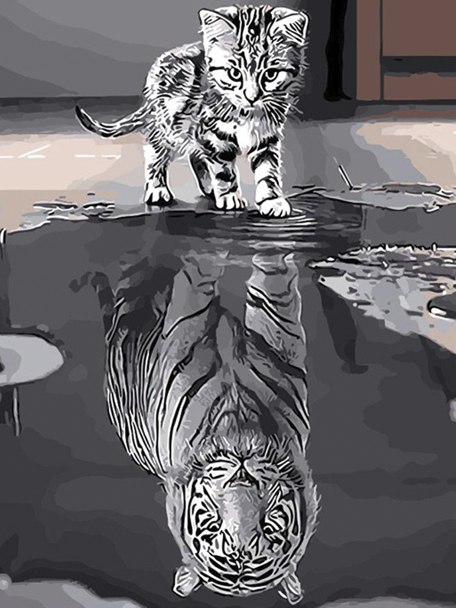 Котенок в отражении тигр (30 фото)