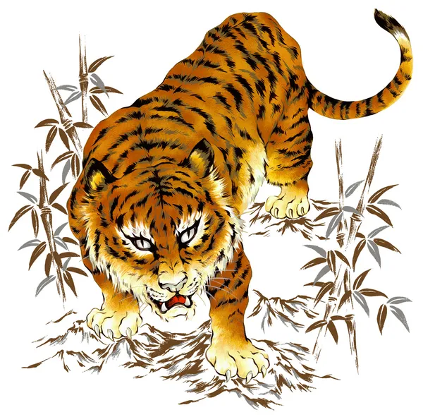 Тигра когти - фото и фотографии . . . Большой тигр, нарисованный чернилами вручную на белом фоне логотипа цвета . . . Большой полосатый тигр нарисовал чернильный набросок в полный рост .
