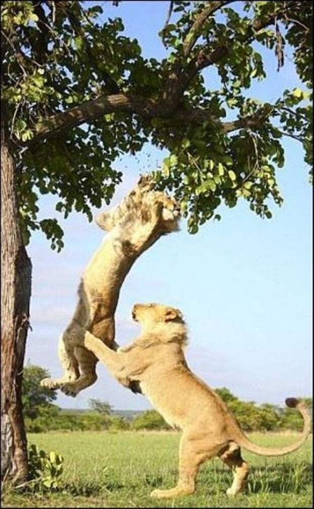 Тигры лазят по деревьям