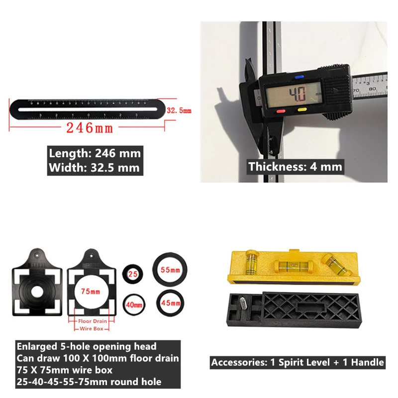Tile Hole Locator Adjustable Tool Aluminum Alloy Universal Angle Measuring Ruler Marble Glass Hole Locator Slides/Fold - Купить с бесплатной доставкой