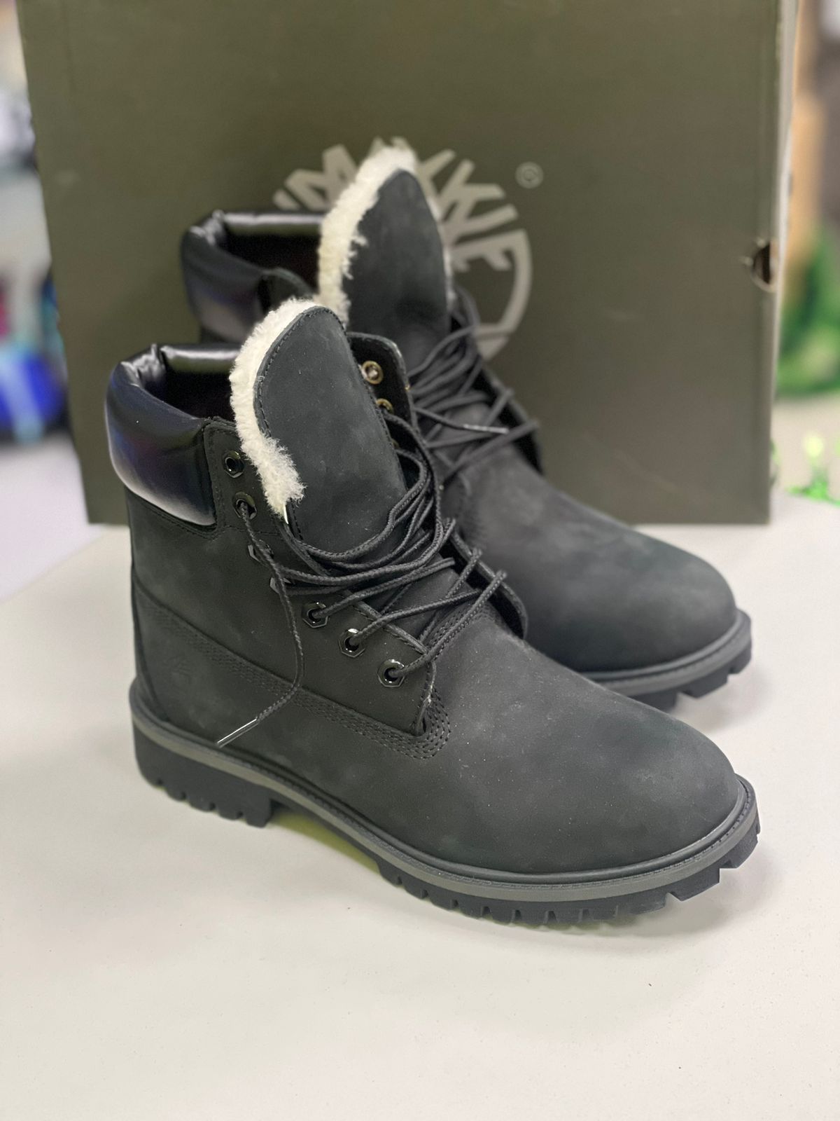 Тимберленды черные с мехом
