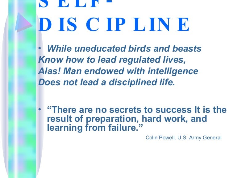 time management . Self discipline is the ability to do what you should do, when you should do it, even if you don't feel like doing it . Without self discipline , all other success principle, techniques and advice are useless . Elbert Hubbard said, "There are 999 other success principles that I have found in my reading and experience, but . . .