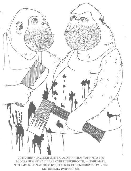 Успешные компании работают. Я помню свои первые опыты работы на Западе – насмотревшись на организацию процессов в немецкой компании, мы наивно рассуждали: «Русским все время нужна железная дисциплина, видимо, русские какие-то неправильные. А вот в Европе все само собой, все на доверии». Довольно скоро поняли, что ни хрена подобного. Просто менеджеры в Европе прекрасно понимают, что будет, если не исполнить какое-то решение, – там очень жесткий спрос с каждого. У компании MARS, эмблемой которой была плаха, прекрасный девиз: «Помни, что твоя голова лежит на плахе ответственности». Человек живет с осознанием этой ответственности, понимает, что ему за это будет и как его вышибут с работы без всяких долгих разговоров. Людям есть что терять – и репутацию, и высокие зарплаты. У них сначала ответственность, а потом права догоняют. А не так, как у нас: сначала дайте мне много прав, тогда, может быть, я на себя ответственность и возьму.