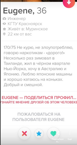 Тиндер - не есть мужской мир, и даже не межгендерный маркет . Тиндер - это сложный и многосоставный феномен, нормальные мужчины с нормальными намерениями там есть, но есть и мутный движ троллей с их мгновенным "хочу в рот" .