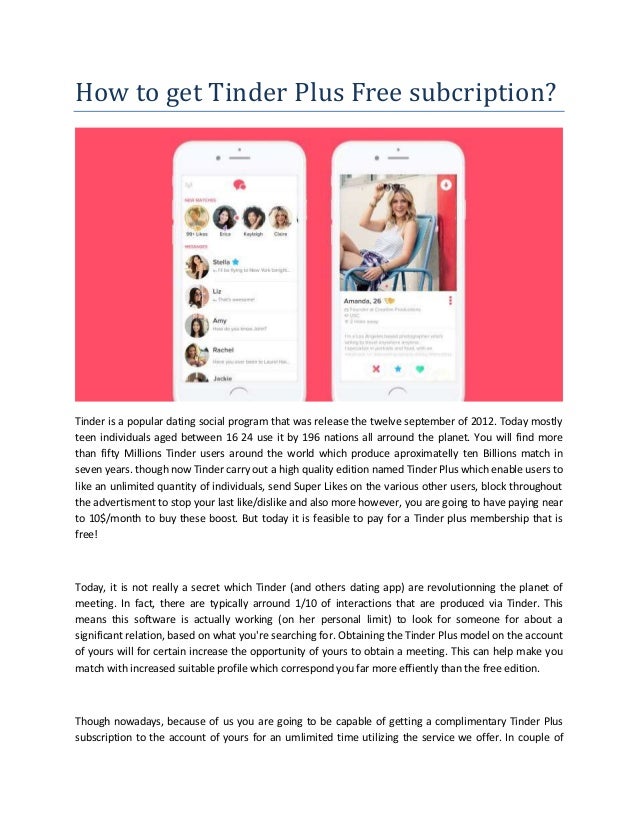 Is tinder free to use? Yes, this is possible in older version but not the premium one . Premium is known as Tinder Plus . This app is mostly chosen by various individuals who like to prefer their mate perfectly . Just think of your personal available all the time, providing various pending matches respectively .