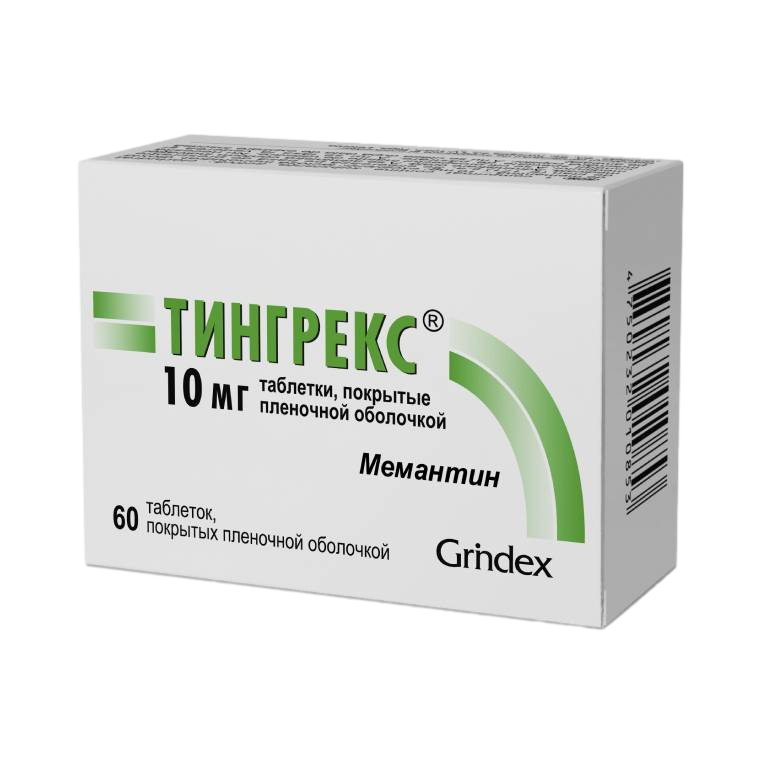 ТИНГРЕКС® Торговое название . ТИНГРЕКС® Международное непатентованное название . Мемантин . Лекарственная форма . Таблетки, покрытые пленочной оболочкой, 10 мг . Состав . Одна таблетка содержит