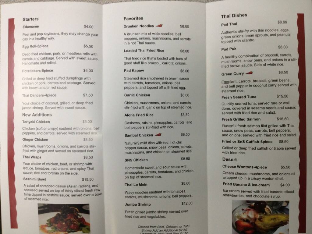 The Menu - Tiny Thai Restaurant, Winooski, Vermont