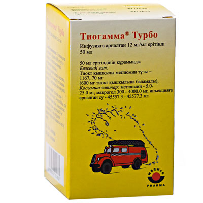 Суточная доза составляет 1 флакон Тиогаммы ® Турбо (600 мг/сут) в течение 2-4 недель ежедневно, внутривенно, капельно, в начальной фазе лечения . Препарат следует вводить медленно, в течение, по крайней мере, 30 минут, не более 50 мг в минуту (что эквивалентно 1,7 мл раствора для инфузий) . Максимальная суточная доза составляет 600 мг .