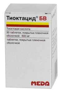 Тиоктацида ® БВ составляет 4 мкг/мл; время ее достижения — 25-30 мин . Обладает эффектом «первого прохождения» через печень . Относительная биодоступность Тиоктацида ® БВ — более 60% . Т 1/2 — 25 мин . Основные пути метаболизма — окисление и конъюгация . Тиоктовая кислота и ее метаболиты выводятся почками (80-90%) . Показания