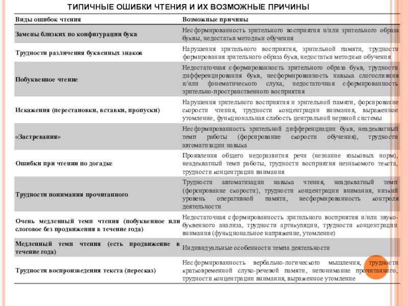 Типичные ошибки чтения