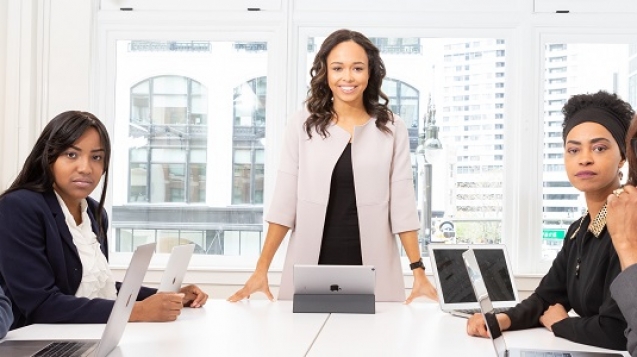 Die vollbusige Bürohure Sarah Vandella muntert die Chefin mit ihren Titten und ihrer Muschi auf