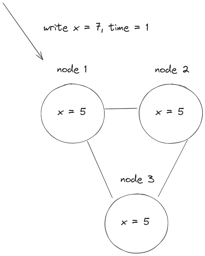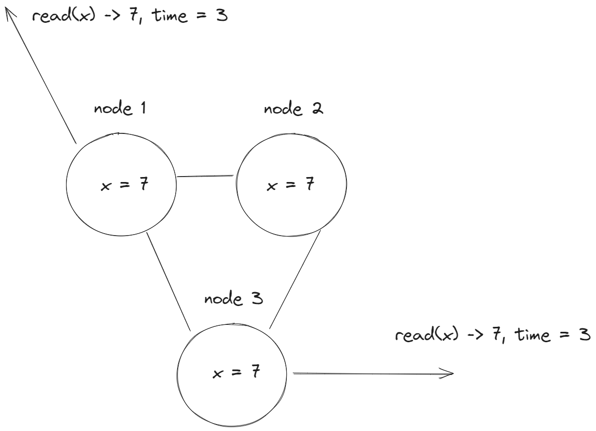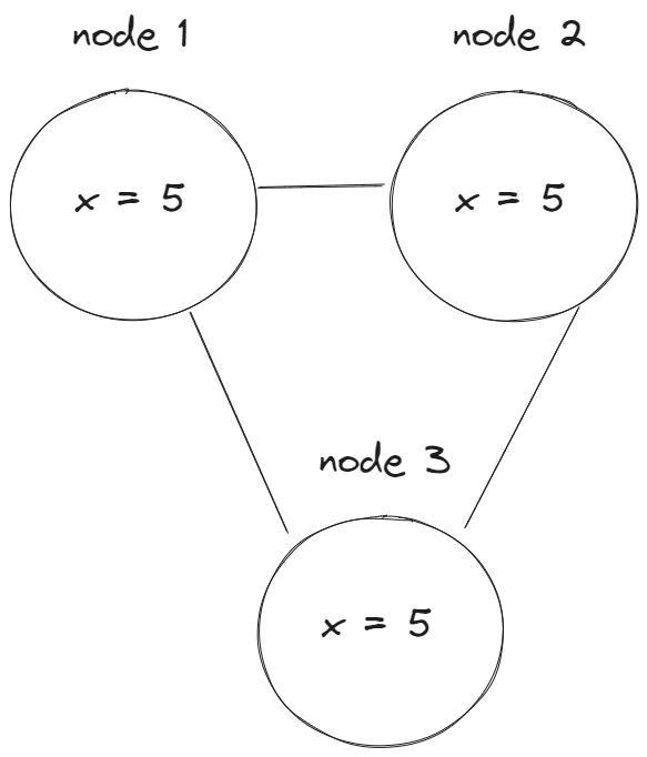 Например, у нас есть некая распределенная система с 3 нодами репликами:
