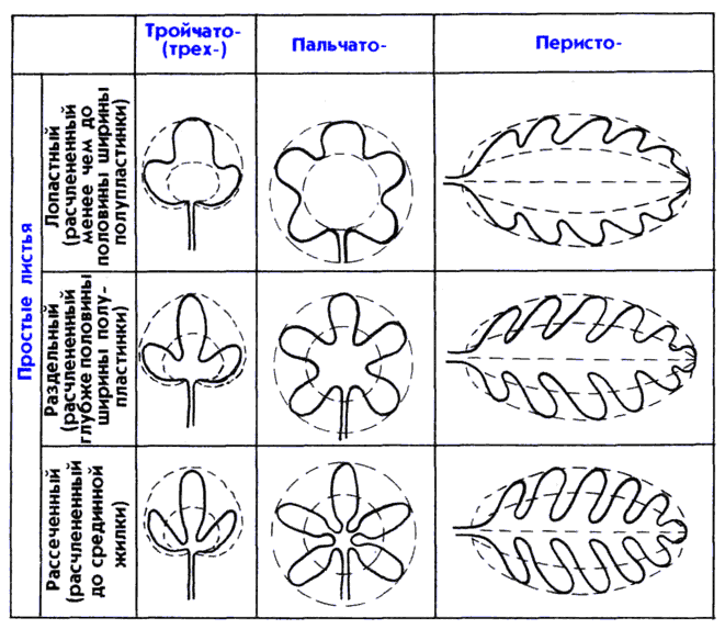 Виды листьев деревьев и растений - фото и названия