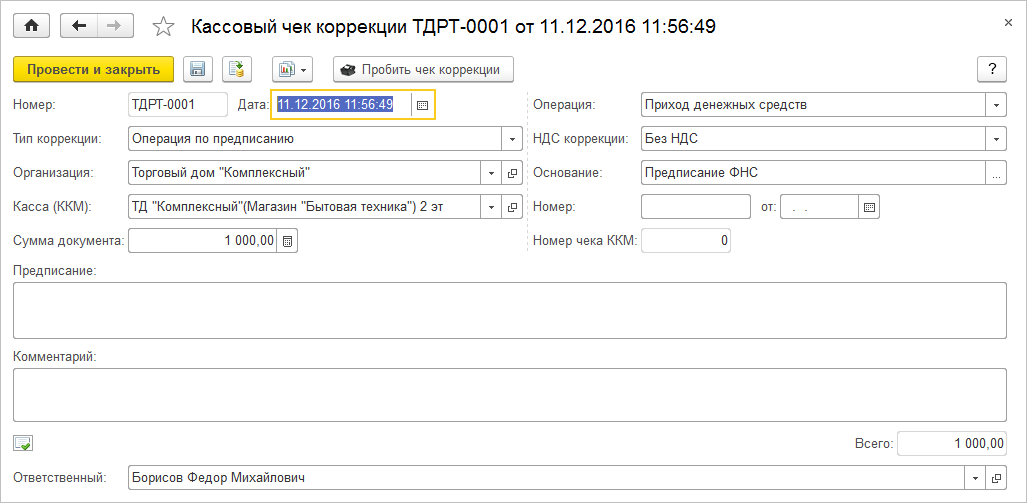 Типы чеков коррекции