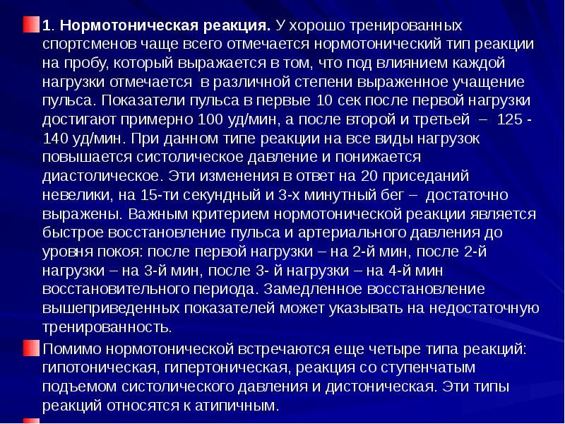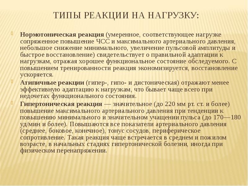Типы реакции артериального давления