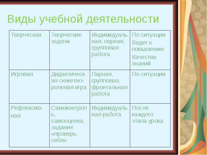 Типы учебной активности