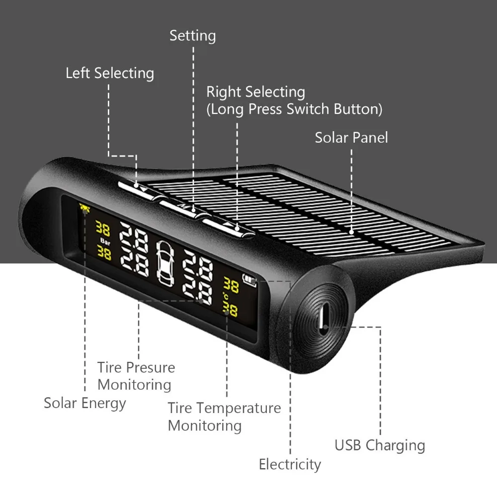 mOuWSykXXHere you can buy Tire Pressure Monitoring System TPMS Solar Powered Car Real-time Wireless Auto Alarm System with Four External Sensors for Car with free delivery to your post office.