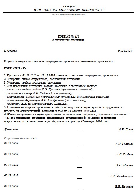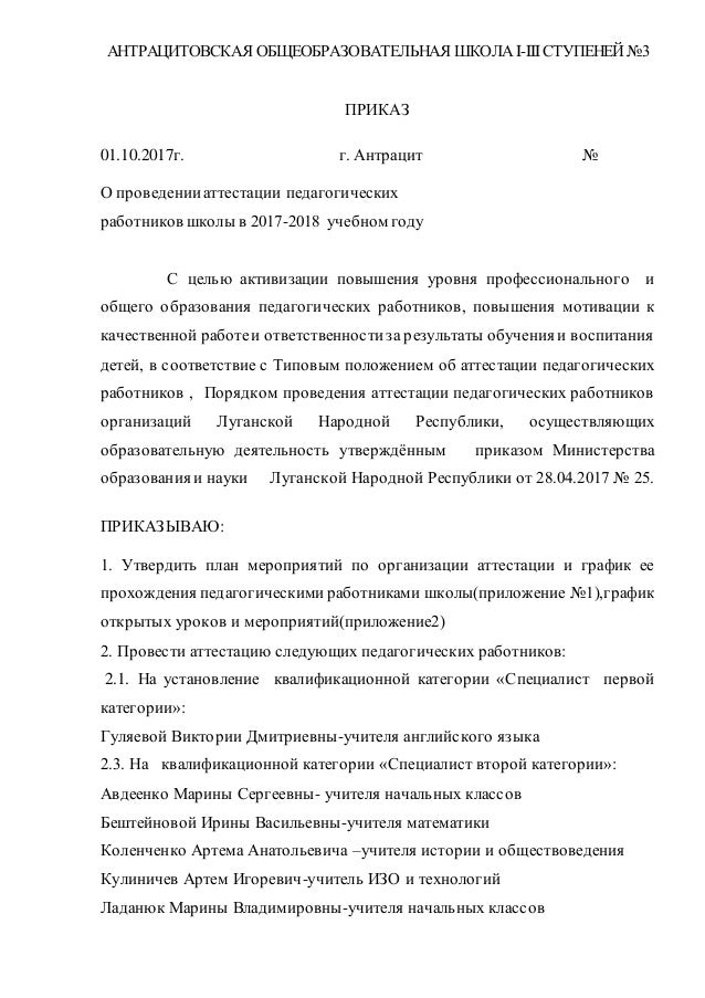 Тиро аттестация приказы