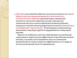 Витилиго тирозин . КРАТКАЯ ТЕОРИЯ ВИТИЛИГО . 1 . Пятна в эпидермисе образуются иммунными клетками, которые по приказу вегетативных нервов «вдруг» начинают давить собственных меланоцитов .