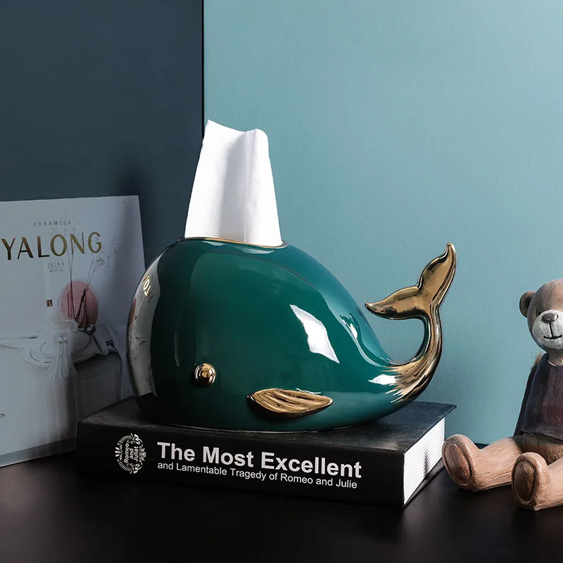 Tissue Box Holder Whale Ceramic Multi-function Napkin Box Cover Sundries Storage Living Room Home Decoration Desktop Ornament - Купить с бесплатной доставкой
