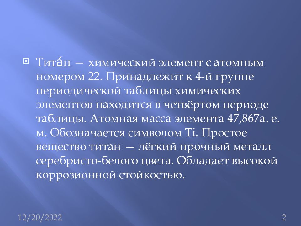 Титан характеристика элемента