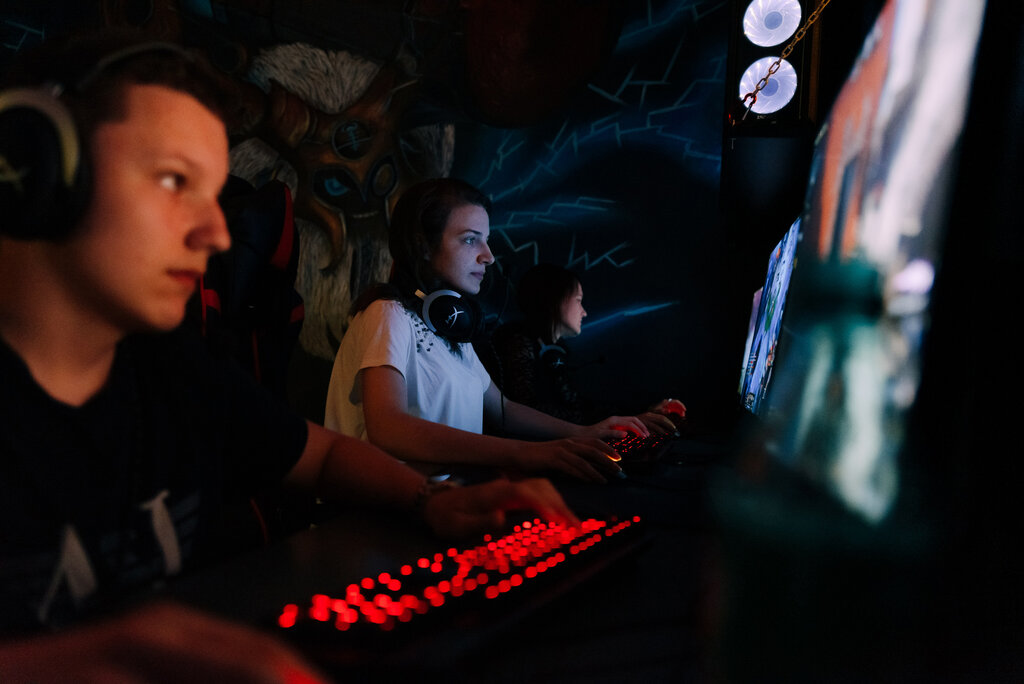 Tittenshow im Internetcafe