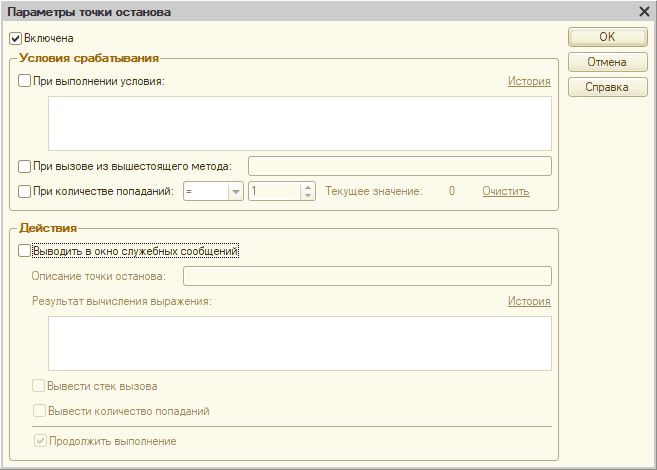Точка останова 1с