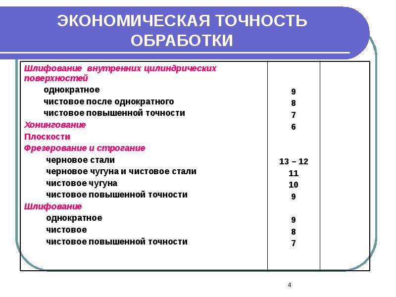 Точность обработки таблица