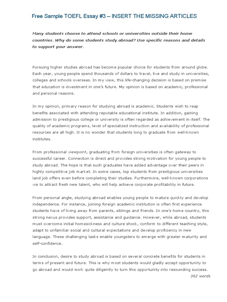 TOEFL Writing Sample Essays - Free Lessons to Improve Your . . .