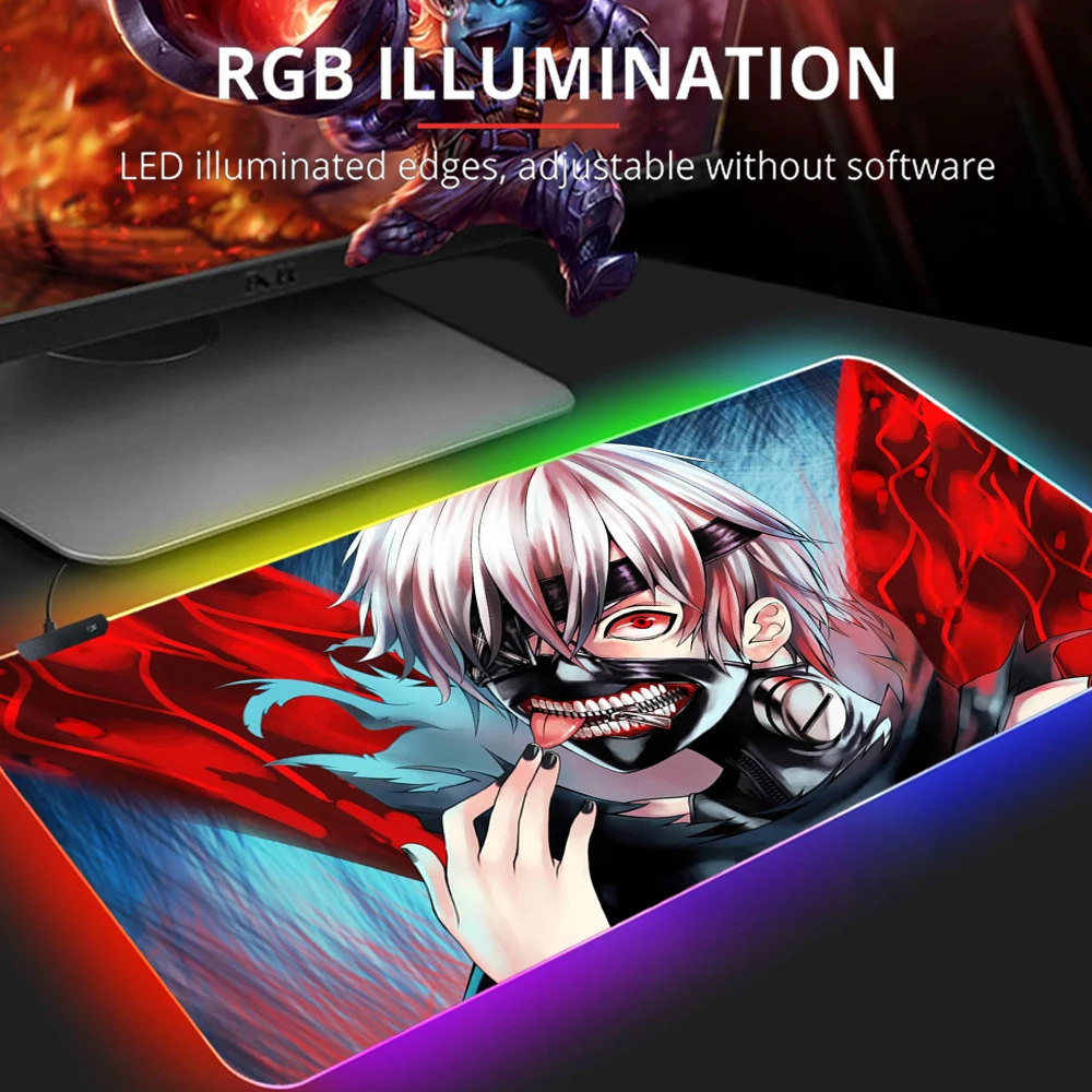 «Tokyo Ghoul Mouse Pad RGB Colorful Pad To Mouse Notbook Computer Mousepad Cool LED Gaming Padmouse Gamer Keyboard Mouse Desk Mat» по лучшей цене на рынке! Всего за 11$ (1045рублей)
