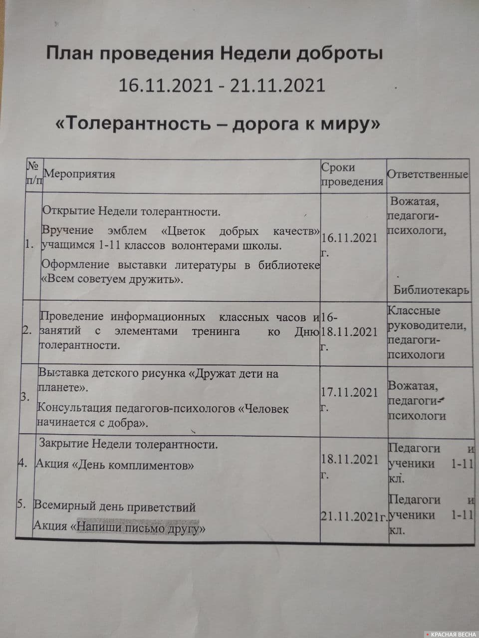 Толерантность название мероприятий