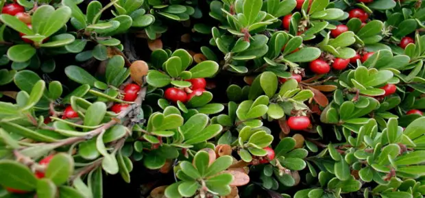 Толокнянка - вечнозеленая культура, которая даже зимой не сбрасывает свои мелкие (до 2 см в длину и до 1 см в ширину) кожистые листья . Они довольно толстые, яйцевидной формы, с хорошо заметным сетчатым рисунком . С двух сторон они почти идентичного цвета - блестяще-зеленые .