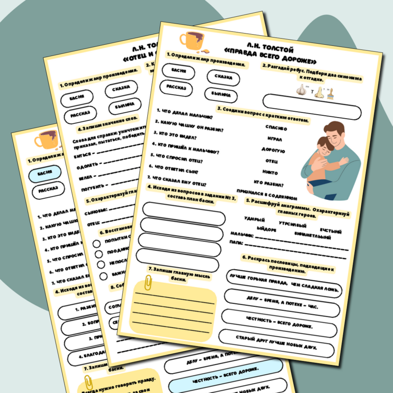 Толстой отец и сыновья рабочий лист