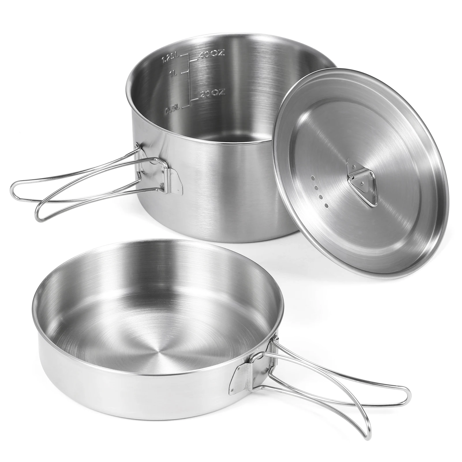 Tomshoo 2pcs Camping Cookware Set Stainless Steel Pot Pan Cooking Set with Foldable Handles Mesh Carry Bag Camping Kitchenware - Купить с бесплатной доставкой
