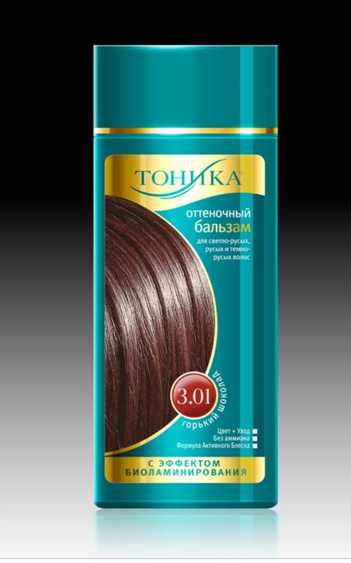 Тоника предлагает оттеночный бальзам «Горький шоколад 3 .01» для светло-русых, тёмно-русых и русых волос . Тоника - с бережным отношением к твоим волосам .