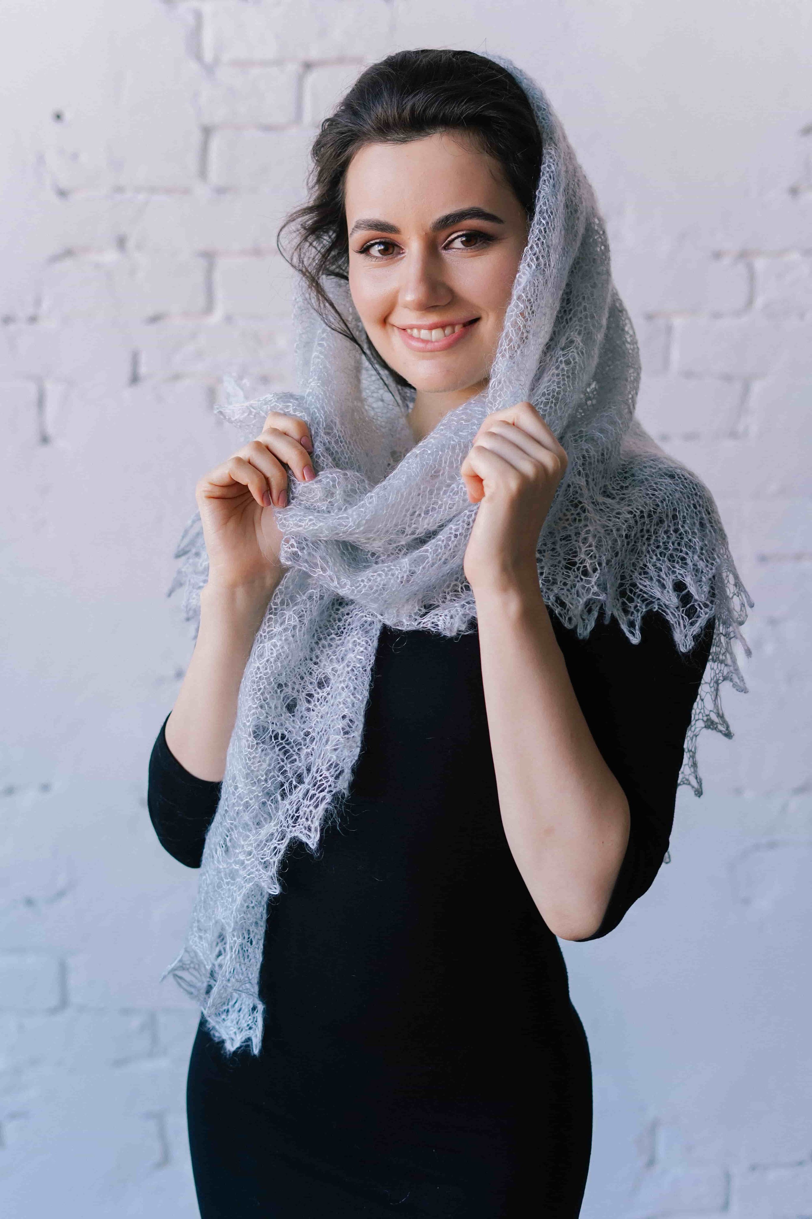 Тонкий пуховый платок 134 фото