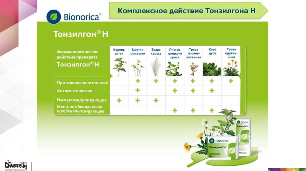 Итак препарат Тонзилгон Н благодаря комплексу активных растительных компонентов оказывает противовирусное, противовоспалительное и иммуномодулирующее действие .