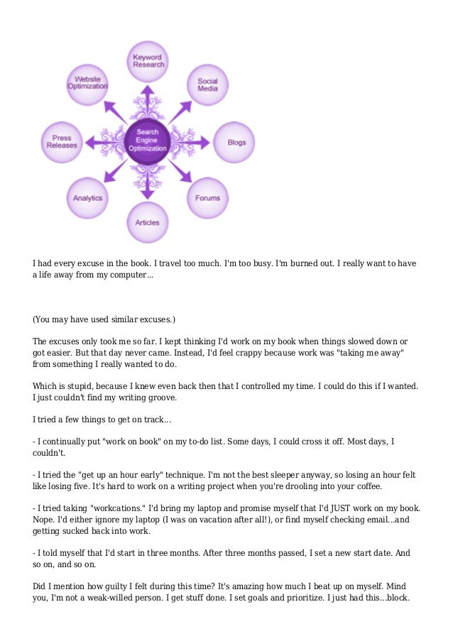 Try to figure out what's keeping you so busy and what you can do to eliminate distractions, as much as possible . If you're exhausted after work or on the weekends, try to solve this problem by talking to your boss and negotiating your schedule . Also, look at your sleep, diet and exercise routine .