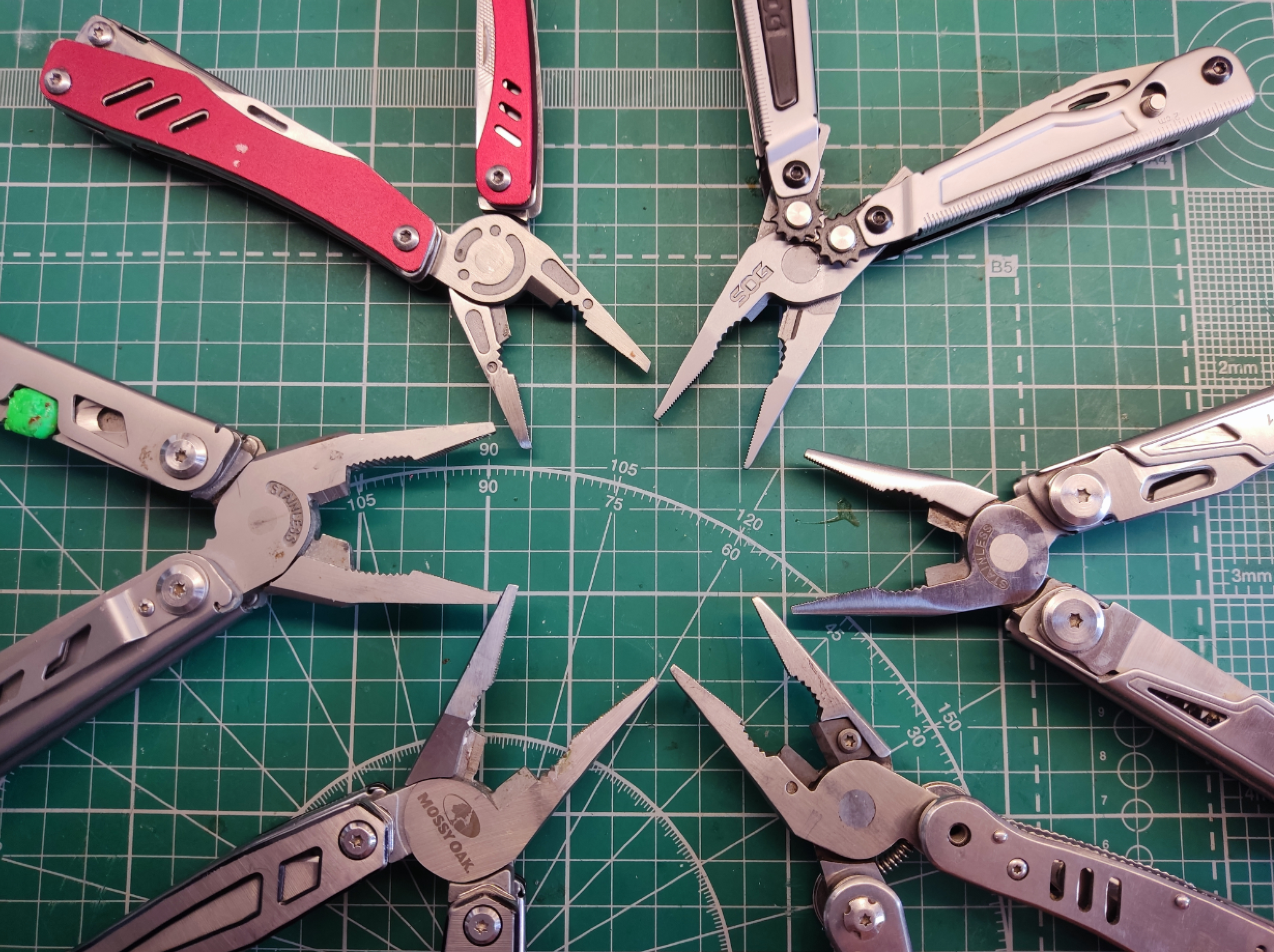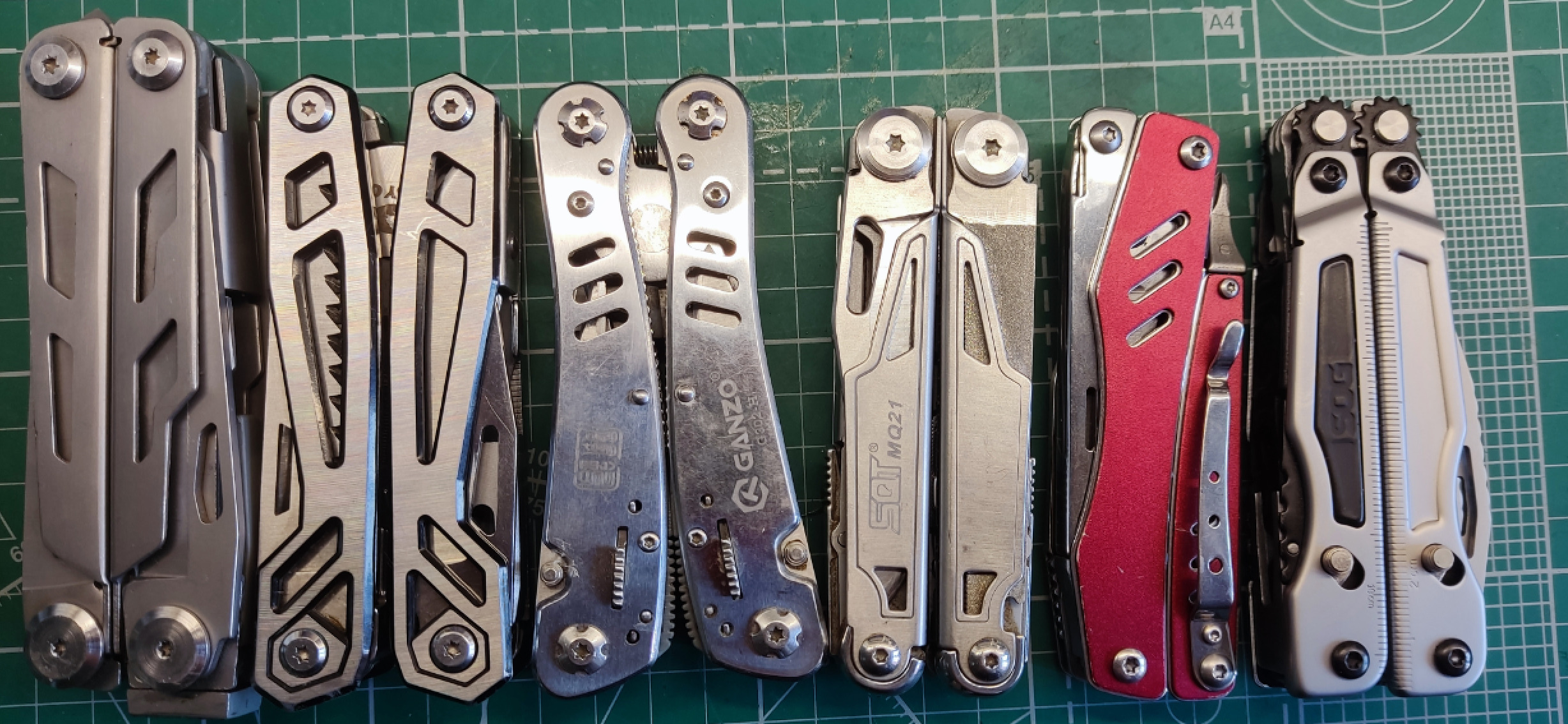 Универсальные инструменты с пассатижами, ножами и многим другим. Иногда используют их и как тиски-зажим при пайке компонентов, зажимая рукоятки простой канцелярской резинкой с нужной упругостью. Удобны тем что всегда под рукой и не занимают много места. Естественно универсальность делает их более громоздкими, чем специализированный инструмент. Некоторые из мультитулы неплохо поддаются доработке привариванием своих инструментов.