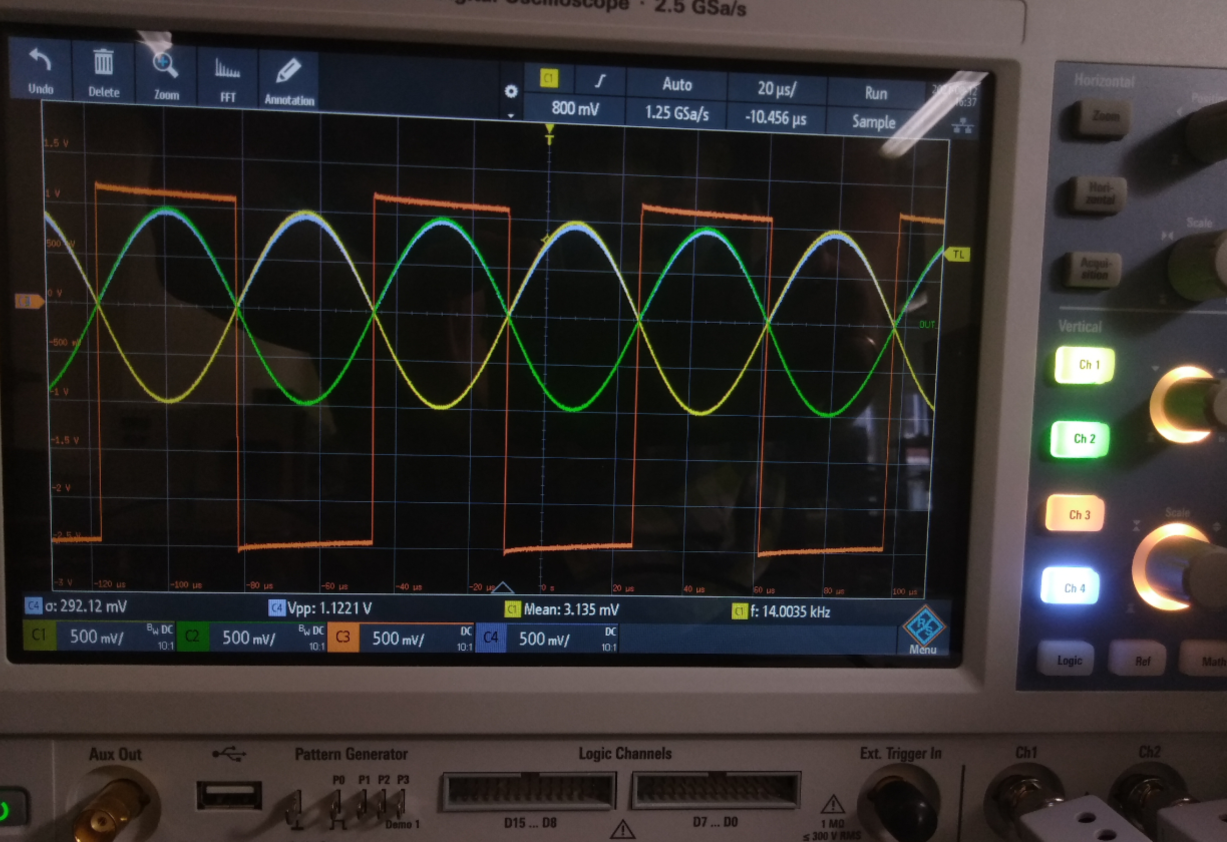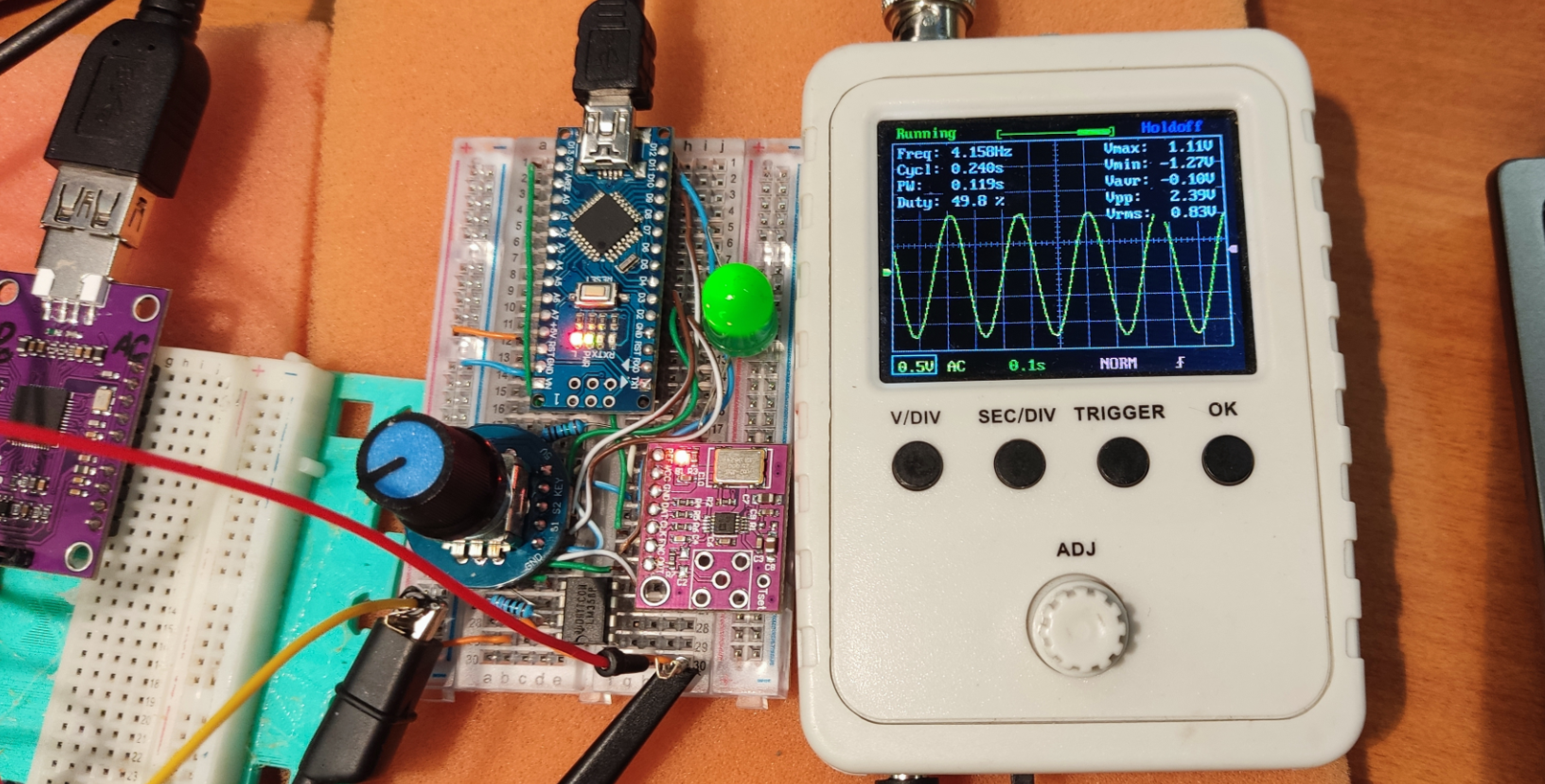На занятиях мы используем наиболее доступные приборы, что бы показать как меняется сигнал, при управлении программой