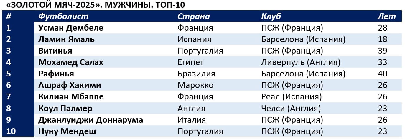 Топ 10 золотого мяча